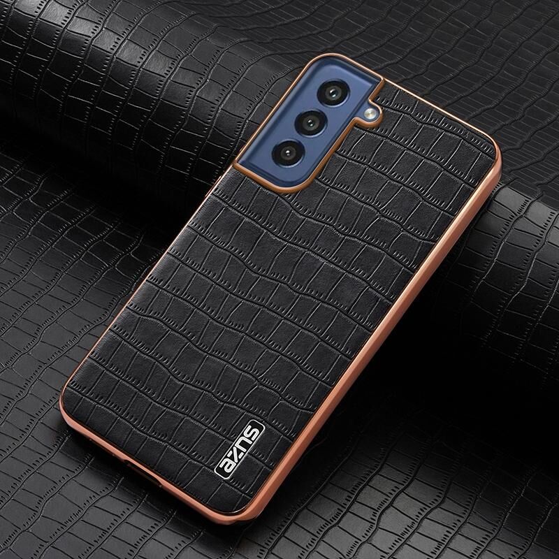 Θήκη κινητού τηλεφώνου πλήρους κάλυψης με ηλεκτρολυτικό πλαίσιο και υφή κροκόδειλου για Samsung Galaxy S21 FE 5G AZNS (Μαύρο) (AZNS)