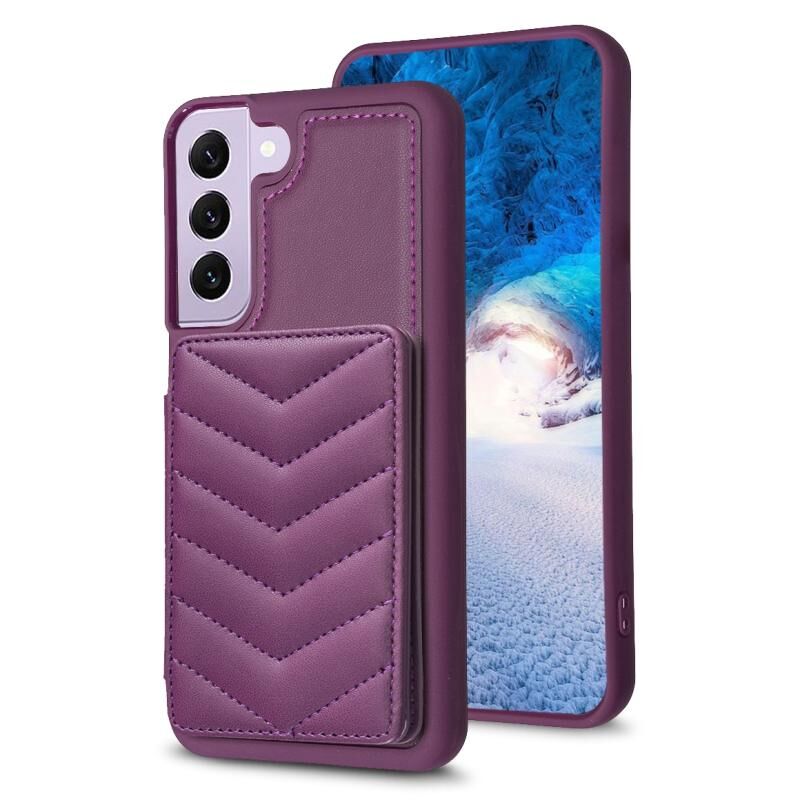 Για Samsung Galaxy S21 FE 5G BF26 Wave μοτίβο κάρτας τσάντα κάτοχος υπόθεση τηλεφώνου (σκούρο μωβ)