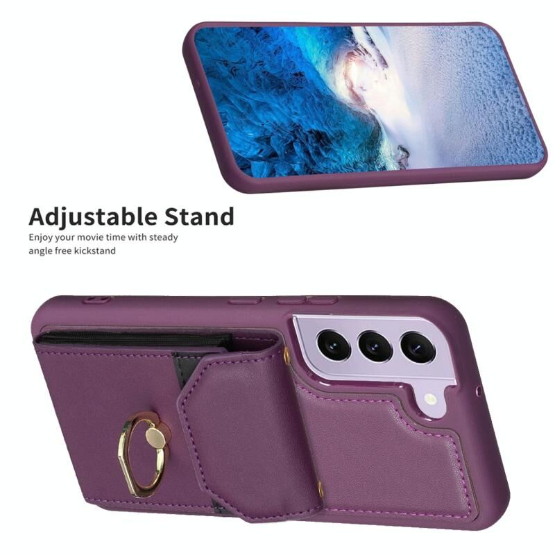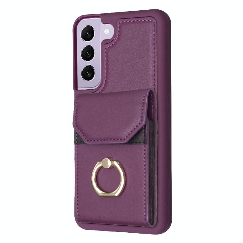 Για Samsung Galaxy S21 FE 5G BF29 Οργάνου κάρτα τσάντα δαχτυλίδι κάτοχος υπόθεση τηλεφώνου (σκούρο μωβ)