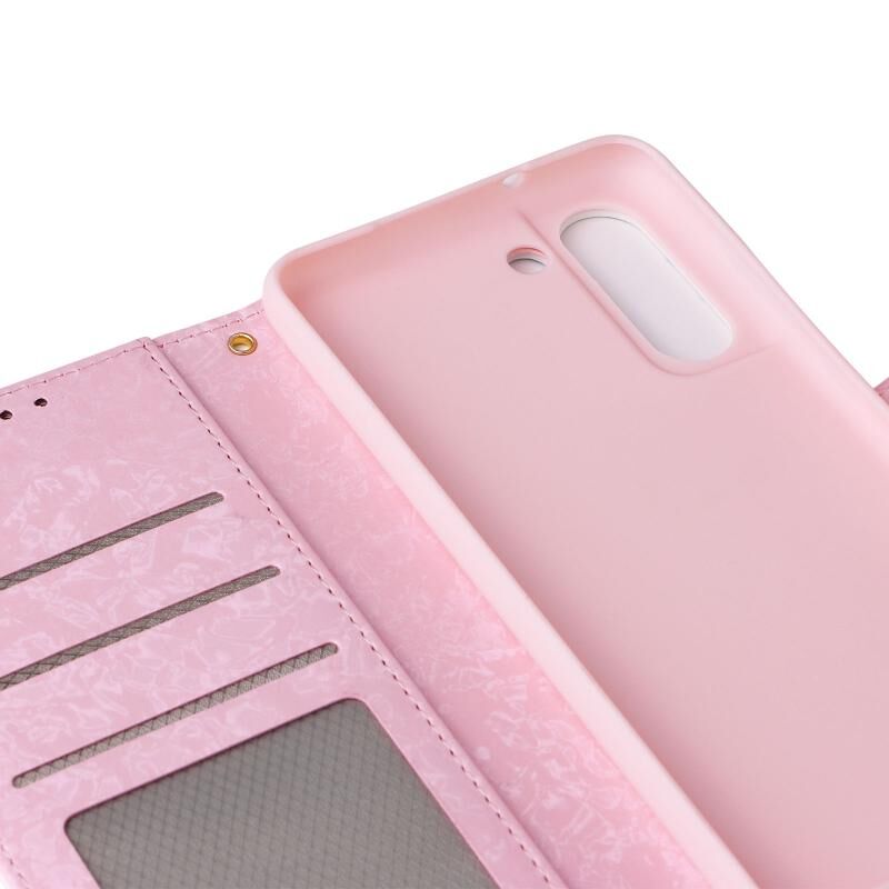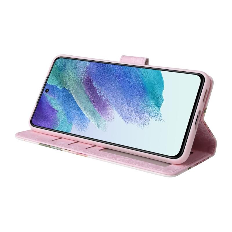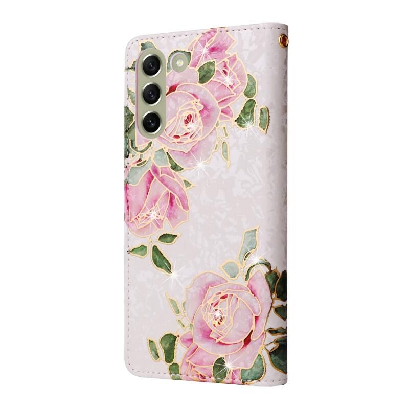 Θήκη δερμάτινη με σχέδιο Bronzing Painting και RFID για Samsung Galaxy S21 FE 5G (Τριαντάφυλλο)