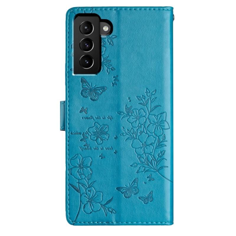 For Samsung Galaxy S21 FE 5G Butterflies and Flowers Leather Phone Case(Blue)