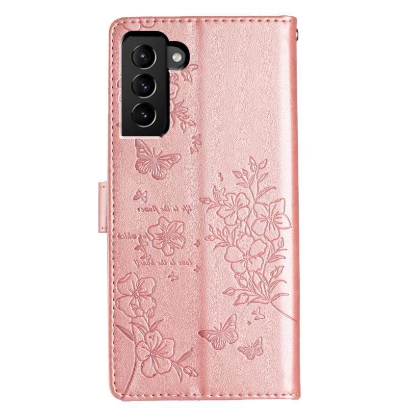 Θήκη τηλεφώνου Samsung Galaxy S21 FE 5G από δέρμα με πεταλούδες και λουλούδια (Χρυσό)