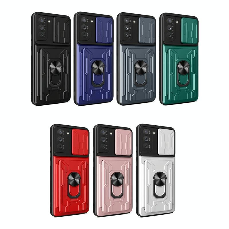 Για Samsung Galaxy S21 FE 5G Κάμερα κάλυμμα τηλεφώνου θήκη με υποδοχή κάρτας & υποδοχή (πράσινο)