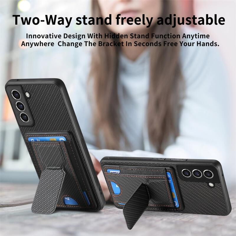 Για Samsung Galaxy S21 FE 5G ίνες άνθρακα ινών Fold Stand ελαστική κάρτα τσάντα υπόθεση τηλεφώνου (μαύρο)
