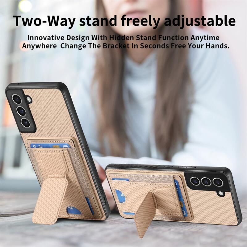 Για Samsung Galaxy S21 FE 5G ίνες άνθρακα ινών Fold Stand ελαστική κάρτα τσάντα υπόθεση τηλεφώνου (χακί)