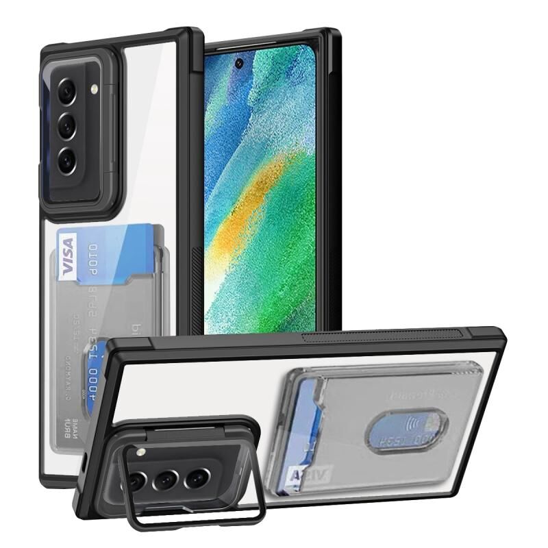 Για Samsung Galaxy S21 FE 5G κάρτα τσάντα κάτοχος ακρυλικό υβριδικό TPU τηλέφωνο υπόθεση (μαύρο)
