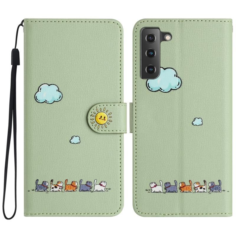 Θήκη τηλεφώνου Samsung Galaxy S21 FE 5G από δέρμα με σχέδια χαριτωμένων γατών (Μπλε)