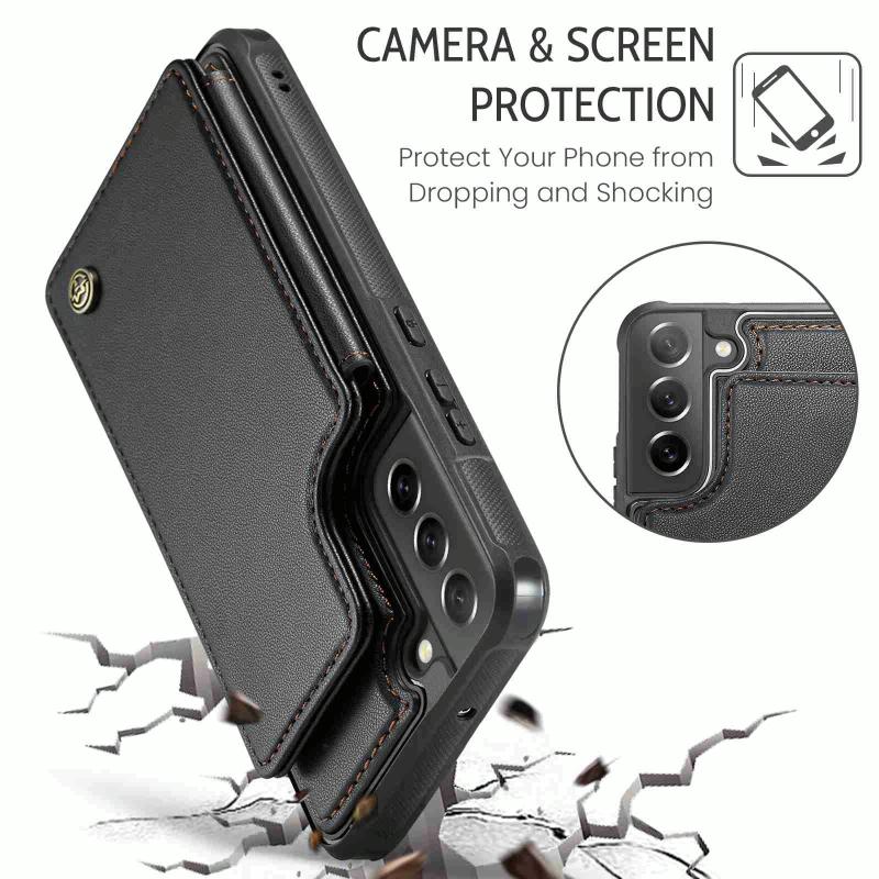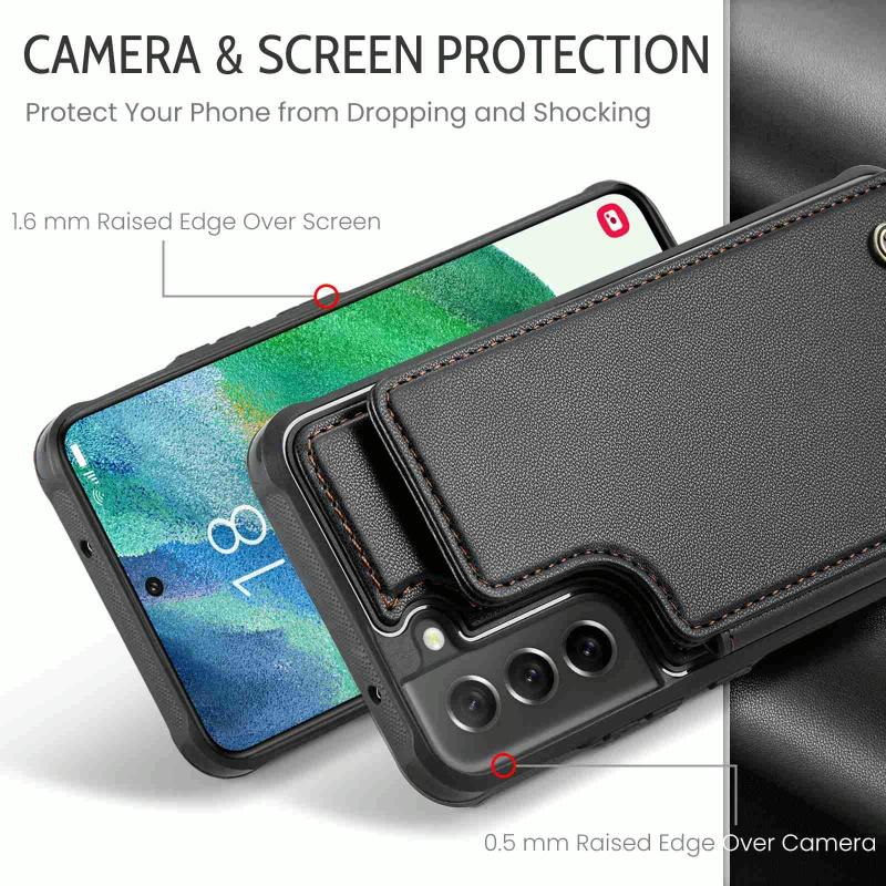 For Samsung Galaxy S21 FE 5G CaseMe C22 Card Slots Holder RFID Anti-theft Phone Case(Black) (CaseMe)