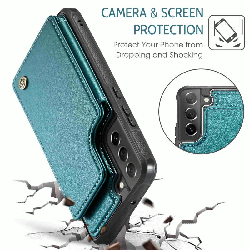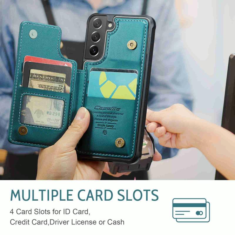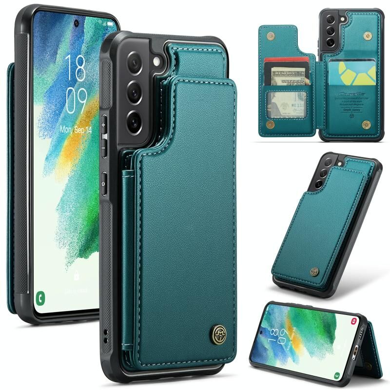 For Samsung Galaxy S21 FE 5G CaseMe C22 Card Slots Holder RFID Anti-theft Phone Case(Blue Green) (CaseMe)