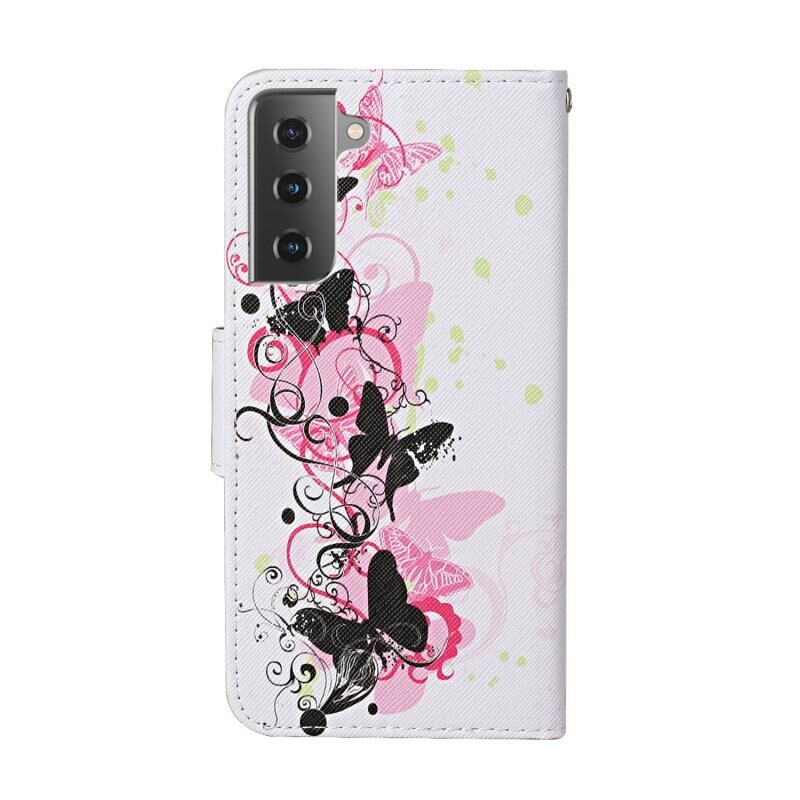Θήκη δέρματος τύπου flip με πολύχρωμο σχέδιο (Τέσσερα Πεταλούδες) για Samsung Galaxy S21 FE 5G.
