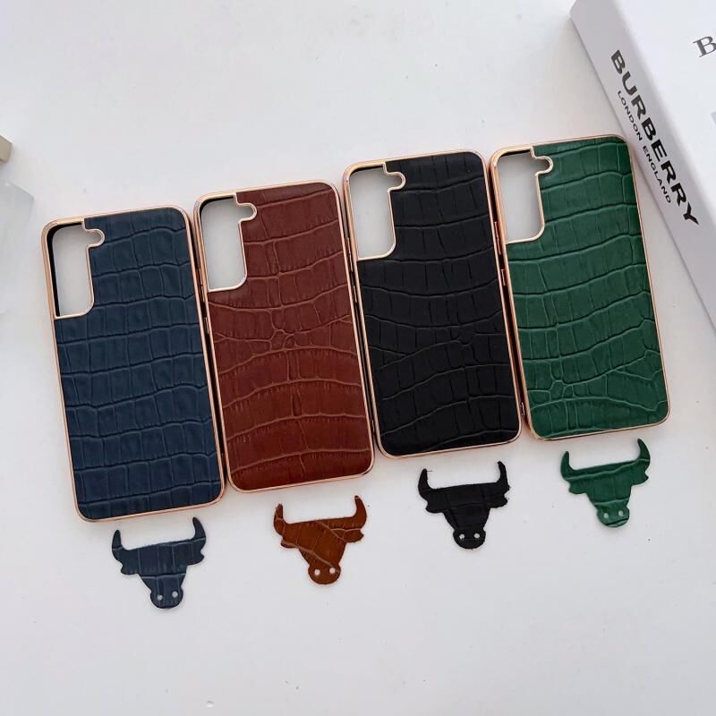 Θήκη τηλεφώνου Samsung Galaxy S21 FE 5G με γνήσιο δέρμα υφής κροκόδειλου και ηλεκτρολυτική επίστρωση (Μαύρο)