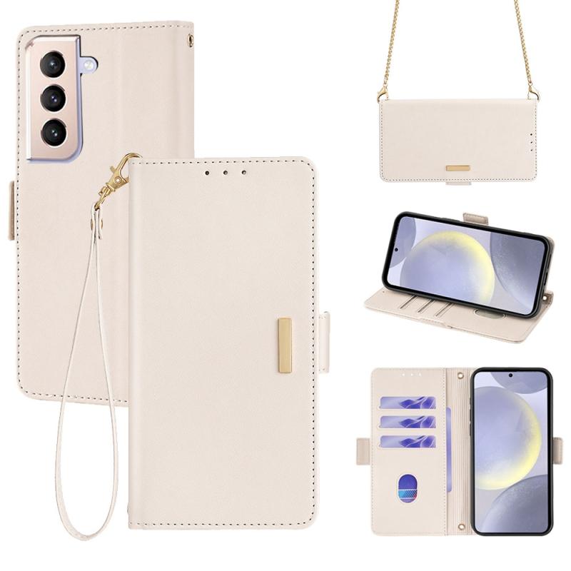 For Samsung Galaxy S21 FE 5G Crossbody Chain Leather Phone Case(White)