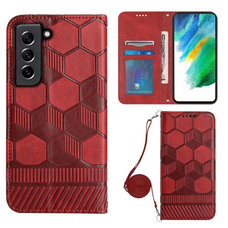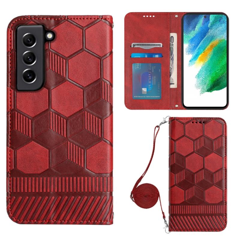 Θήκη κινητού τηλεφώνου Samsung Galaxy S21 FE 5G, διαγώνια, με υφή ποδοσφαίρου, μαγνητική, από PU δέρμα (Κόκκινη)