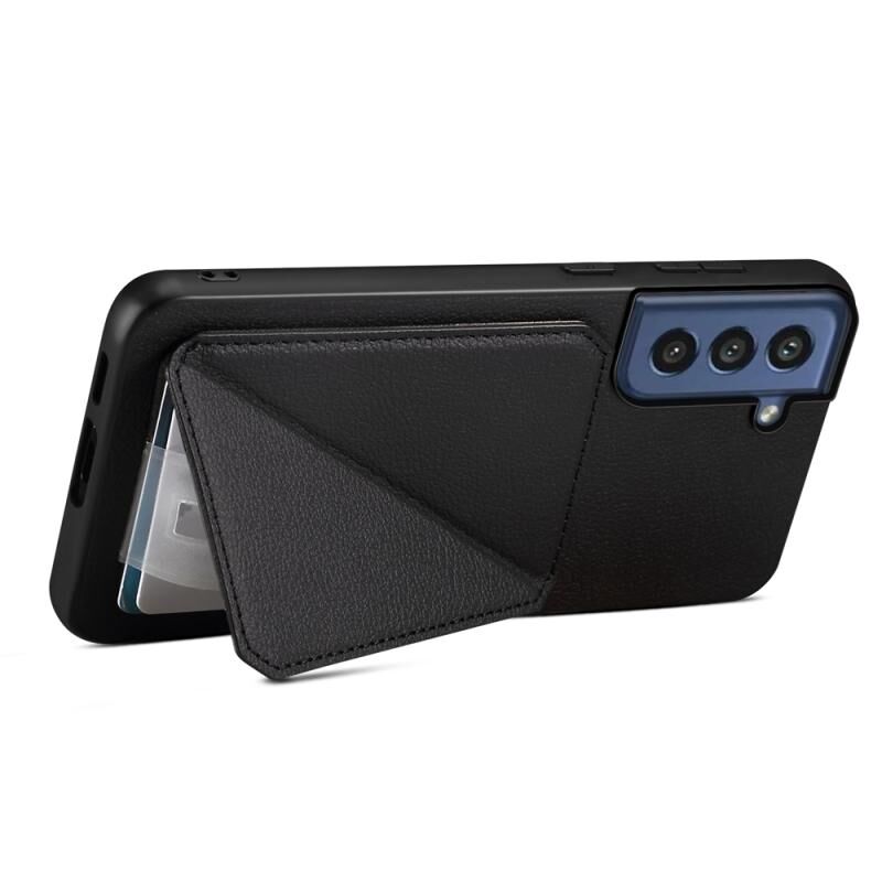 Για Samsung Galaxy S21 FE 5G D04 μοσχάρι Υφή Διπλή υποδοχή κάρτας κάτοχος θήκη τηλεφώνου (Μαύρο)
