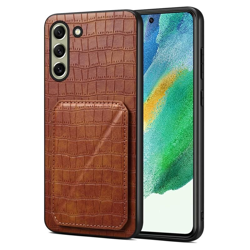 Θήκη τηλεφώνου για Samsung Galaxy S21 FE 5G Denior, απομίμηση δέρματος κροκόδειλου με βάση στήριξης (Μαύρο) (Denior)