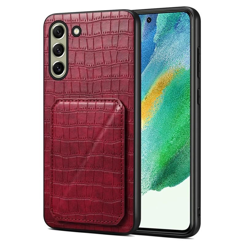 Θήκη τηλεφώνου για Samsung Galaxy S21 FE 5G Denior, απομίμηση δέρματος κροκόδειλου με βάση στήριξης (Μαύρο) (Denior)