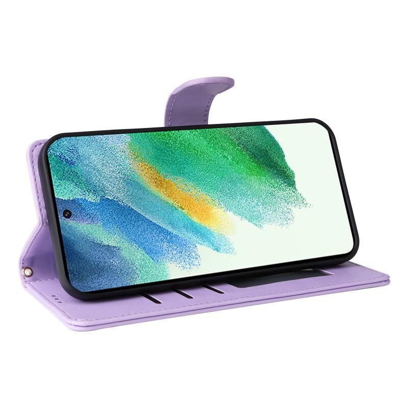 Για Samsung Galaxy S21 FE 5G Diamond Lattice δέρμα Flip υπόθεση τηλεφώνου (ανοιχτό μωβ)