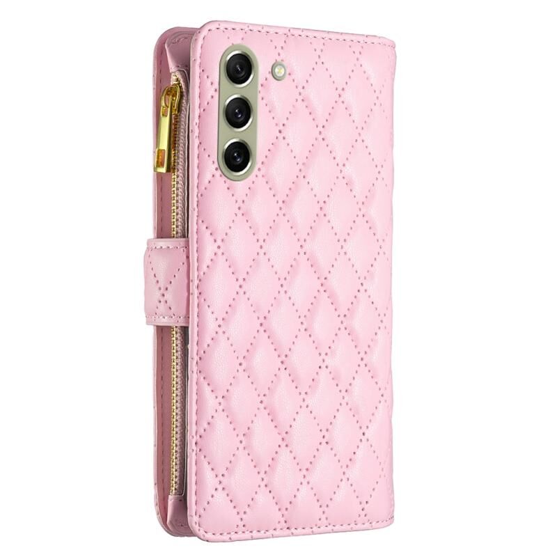 Θήκη τηλεφώνου Samsung Galaxy S21 FE 5G, Δερμάτινη θήκη τύπου πορτοφολιού με φερμουάρ και σχέδιο διαμαντόπετρας (Λευκό)