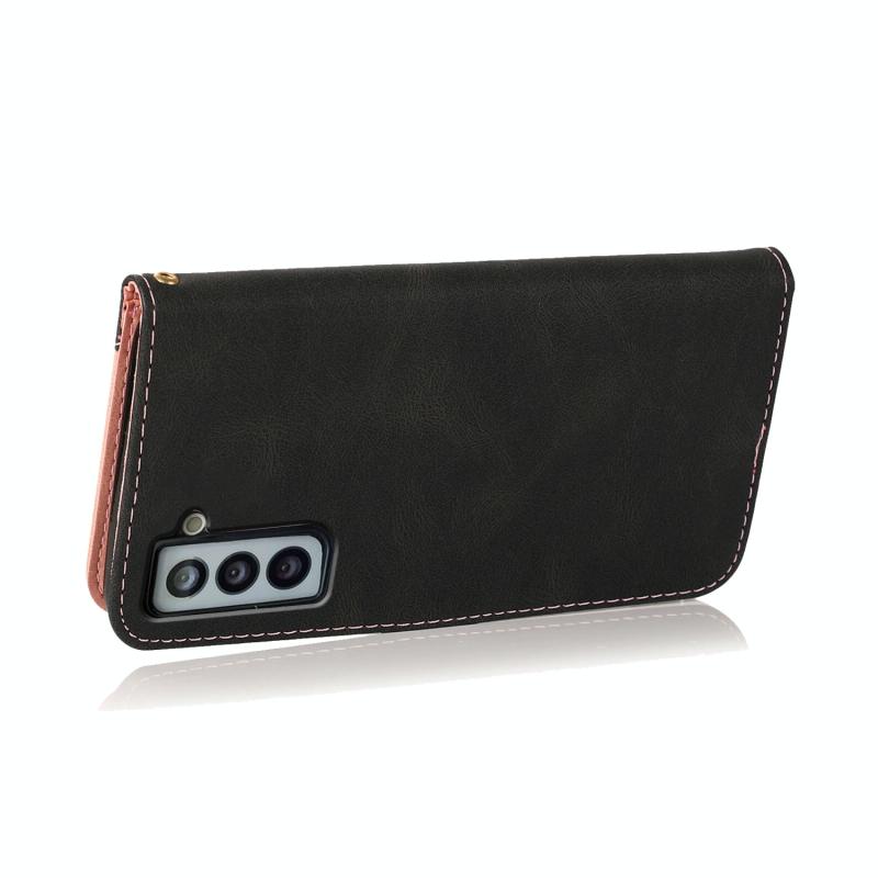 Θήκη τηλεφώνου από δέρμα με διπλή ραφή για Samsung Galaxy S21 FE 5G (Μαύρο Ροζ Χρυσό)