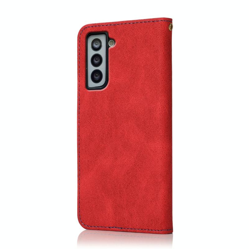 Θήκη τηλεφώνου από δέρμα με διπλή ραφή για Samsung Galaxy S21 FE 5G (Κόκκινο Μπλε)