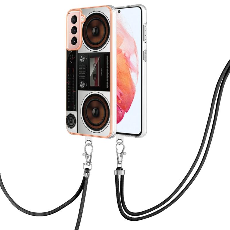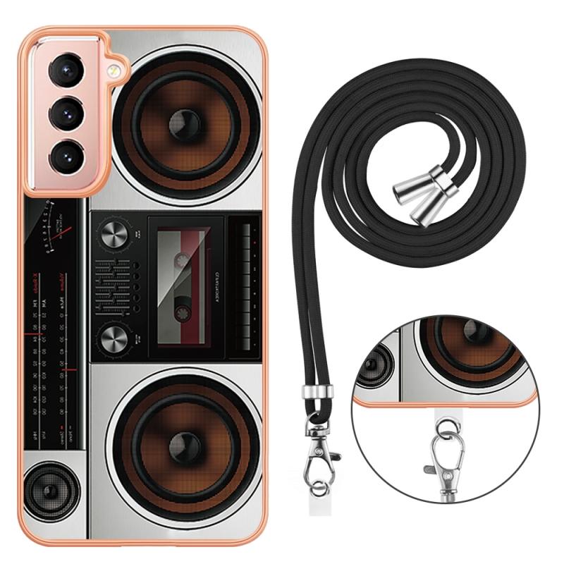 For Samsung Galaxy S21 FE 5G Electroplating Dual-side IMD Phone Case with Lanyard(Retro Radio)