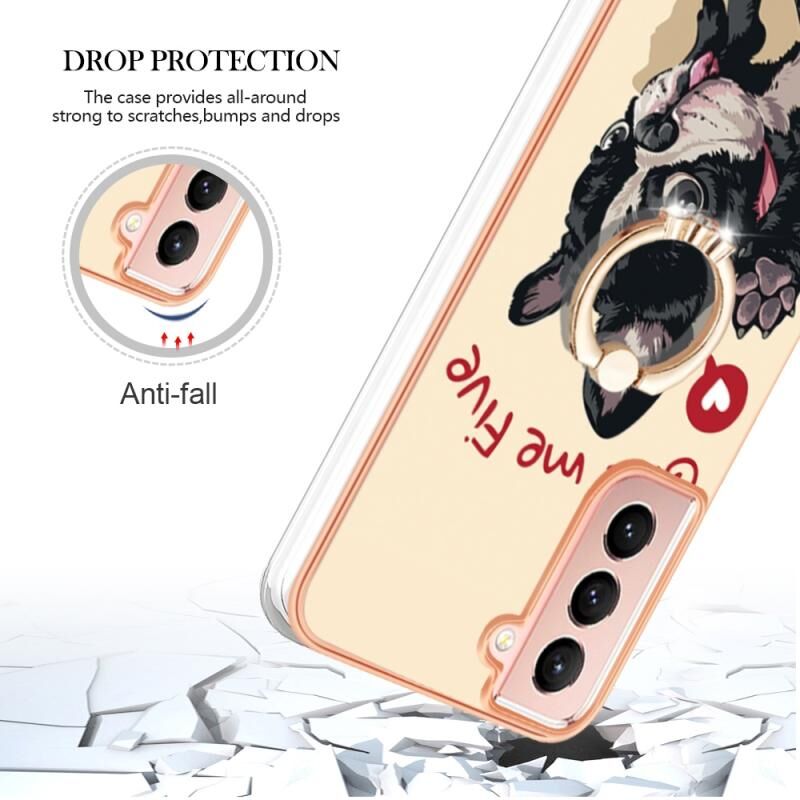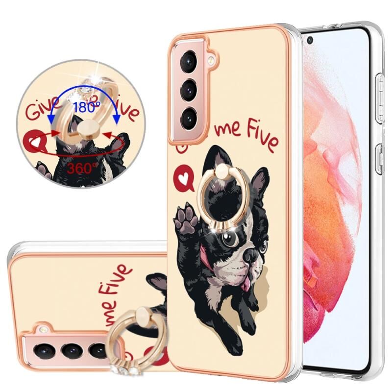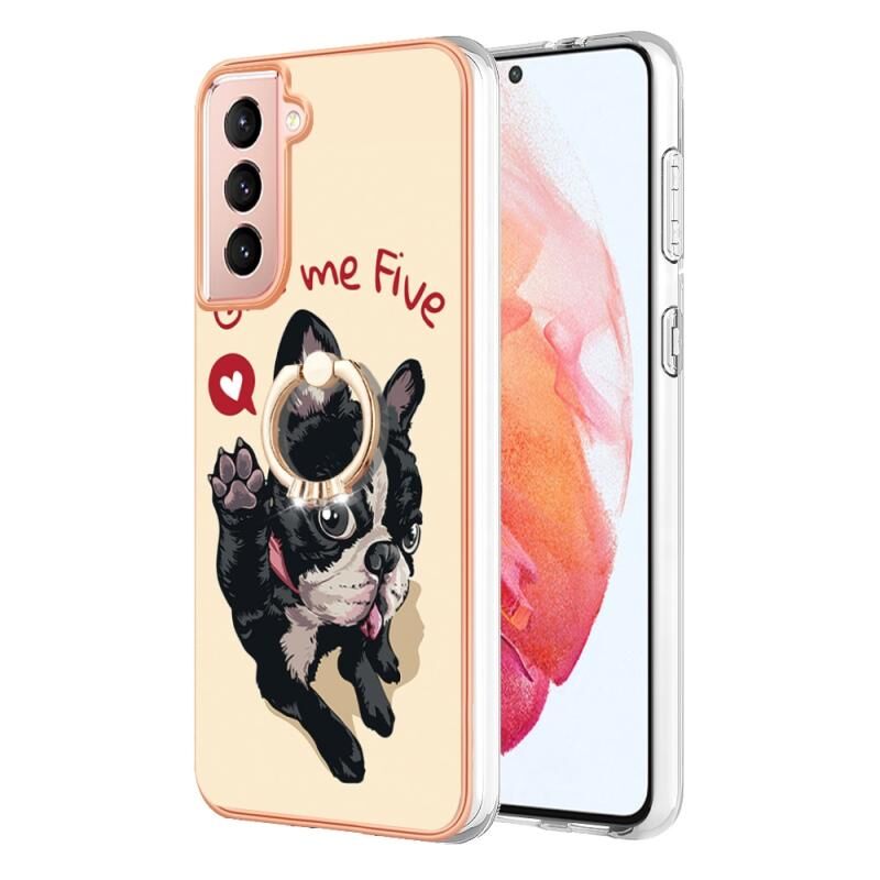 Θήκη τηλεφώνου με δακτύλιο στήριξης για Samsung Galaxy S21 FE 5G, με ηλεκτρολυτική επιμετάλλωση και IMD διπλής όψης (Lucky Dog)