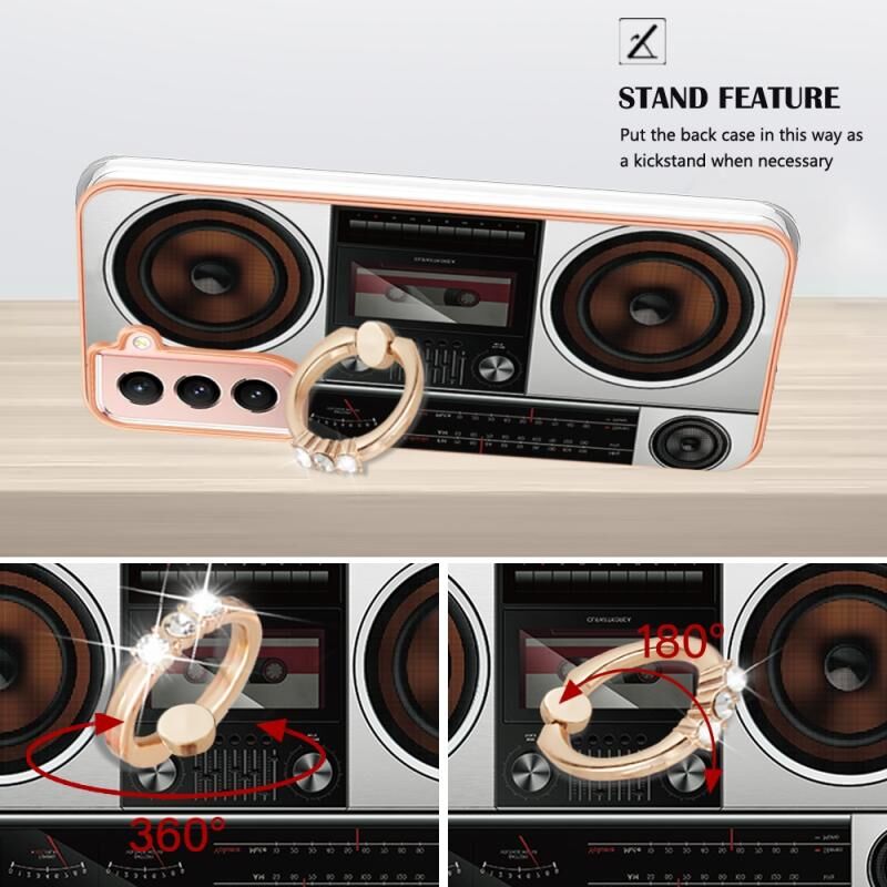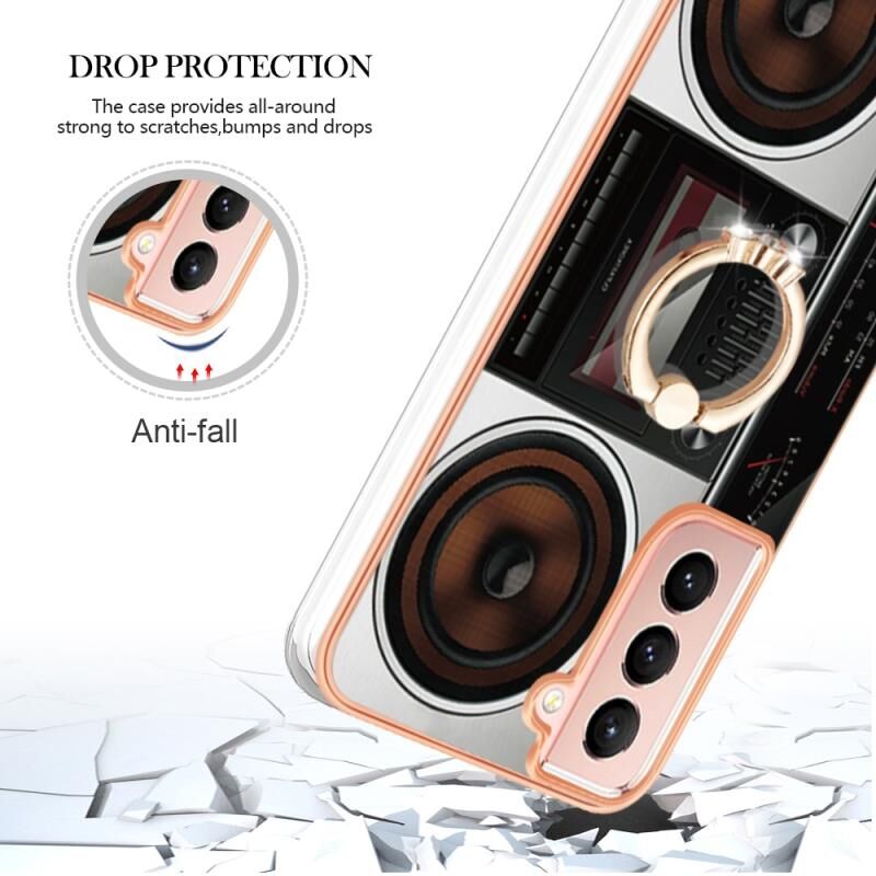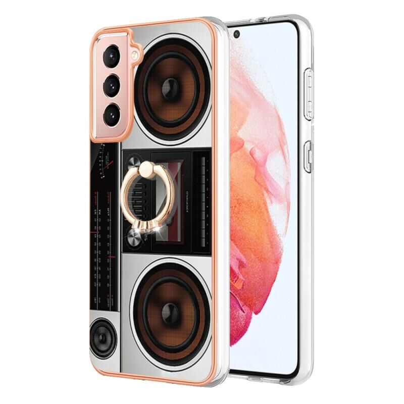 Θήκη τηλεφώνου για Samsung Galaxy S21 FE 5G με ηλεκτρολυτική επιμετάλλωση, διπλής όψης IMD με δακτύλιο στήριξης (Ρετρό Ραδιόφωνο)