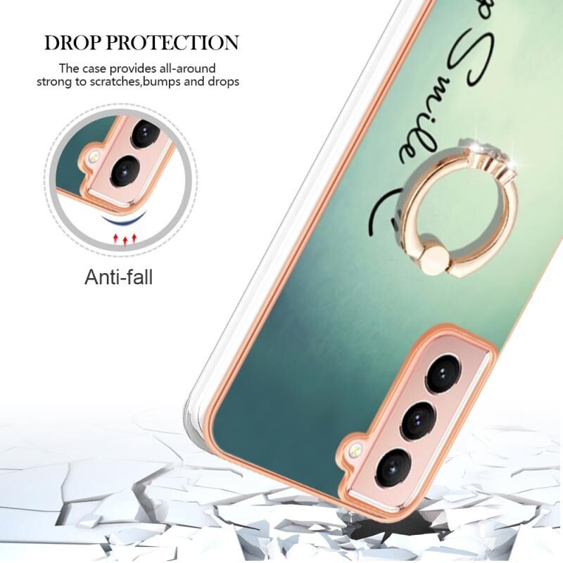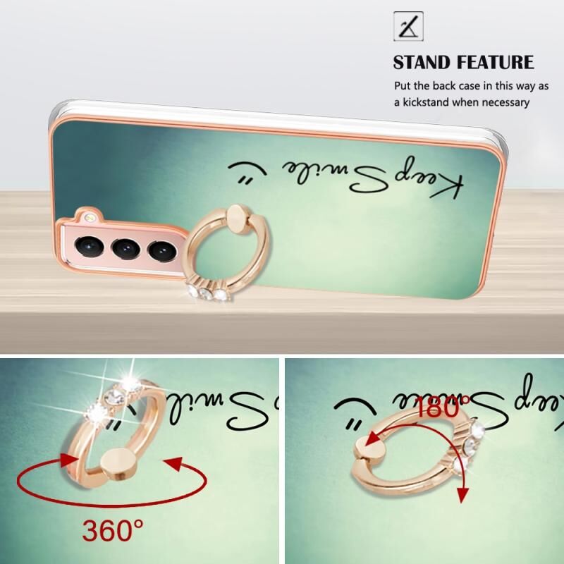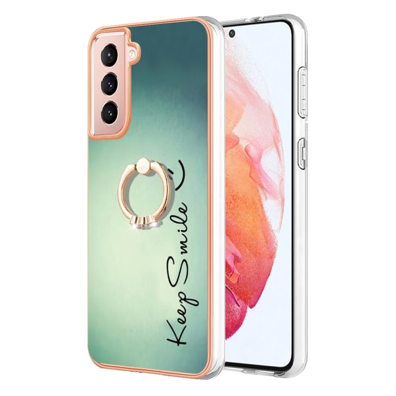 Θήκη τηλεφώνου με δακτύλιο και σχέδιο χαμόγελου για Samsung Galaxy S21 FE 5G, με ηλεκτρολυτική επιμετάλλωση και IMD σε διπλές πλευρές.
