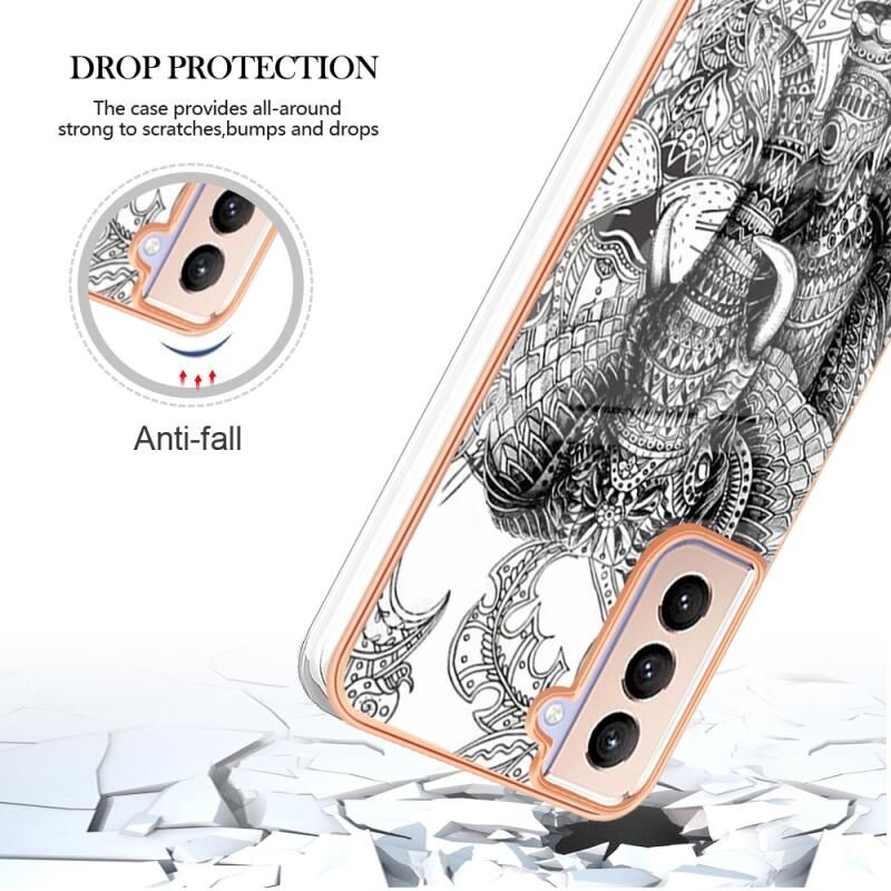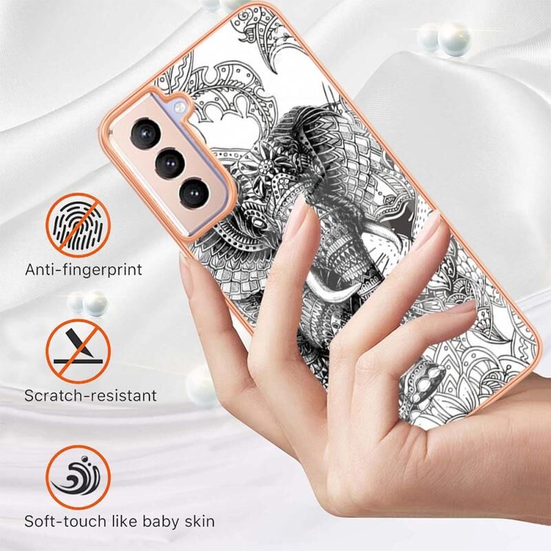 Θήκη τηλεφώνου για Samsung Galaxy S21 FE 5G, με ηλεκτρολυτική μαρμάρινη όψη, διπλής όψης IMD (Totem Elephant)