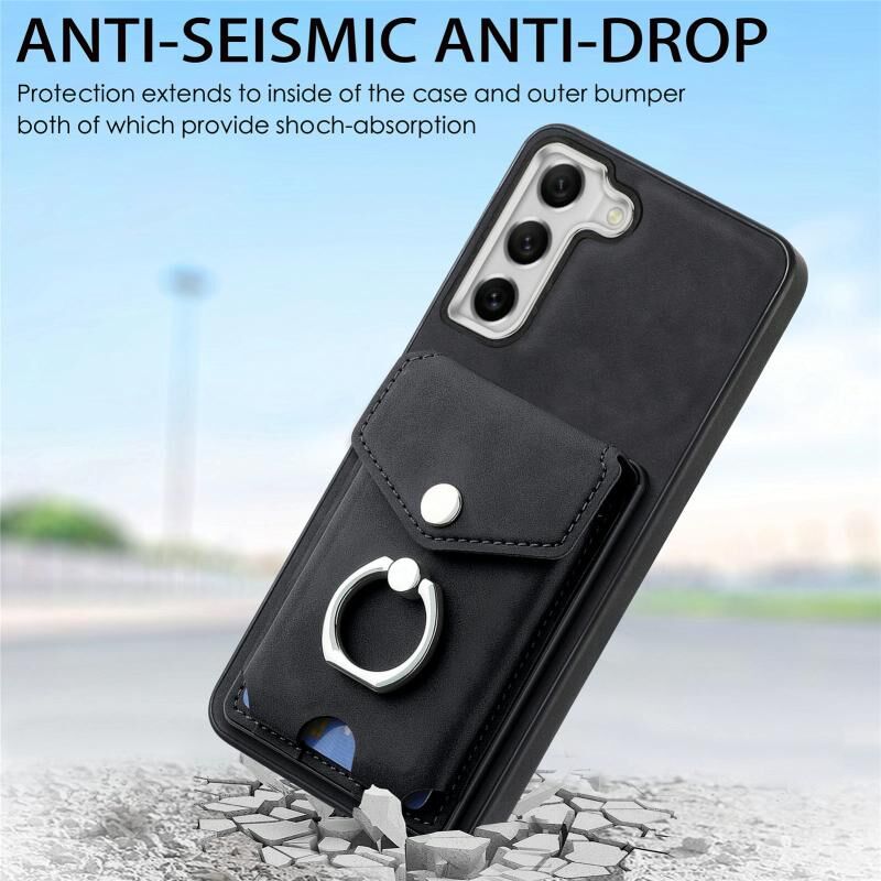 Για Samsung Galaxy S21 FE 5G Electroplating Skin-feel Δερμάτινο δαχτυλίδι κάρτα πορτοφόλι υπόθεση τηλεφώνου (Μαύρο)
