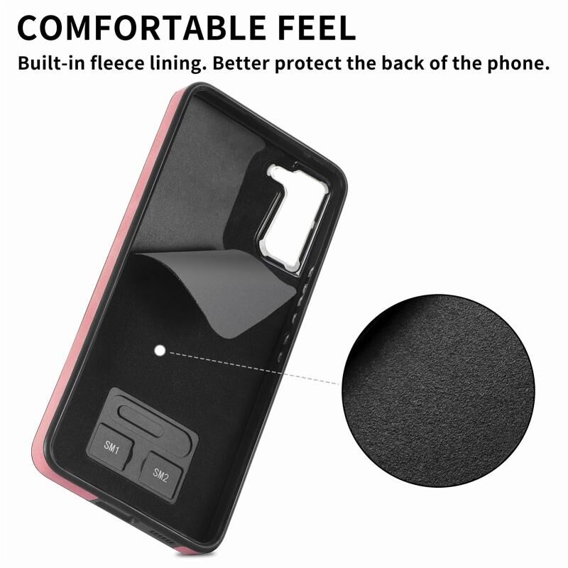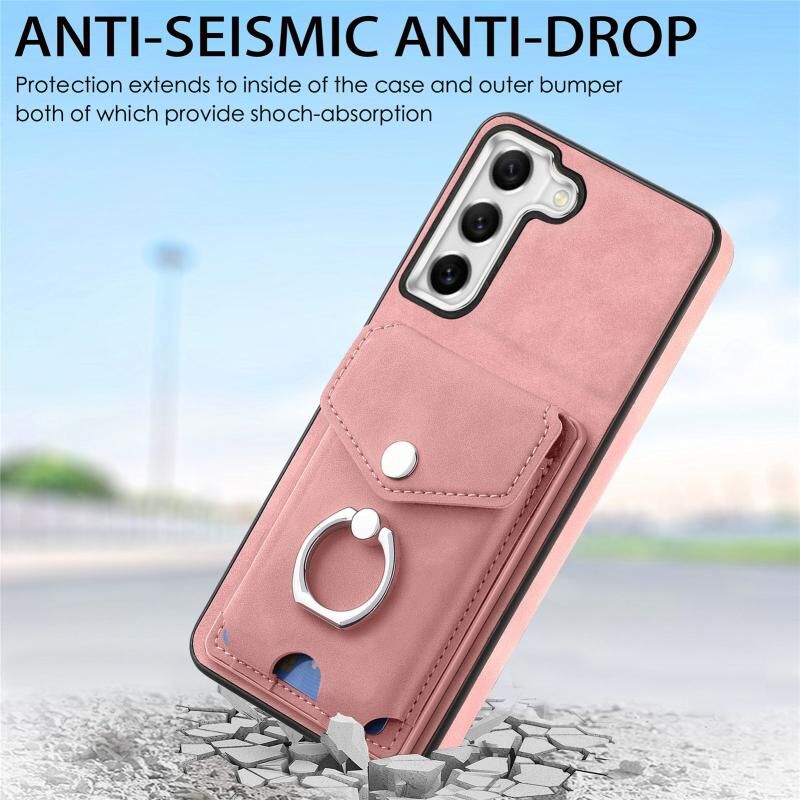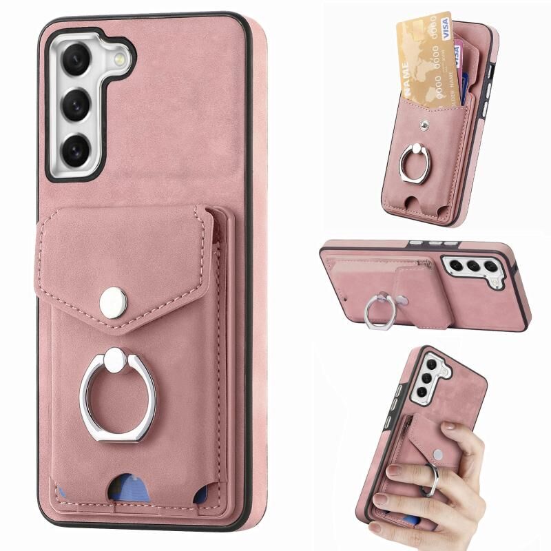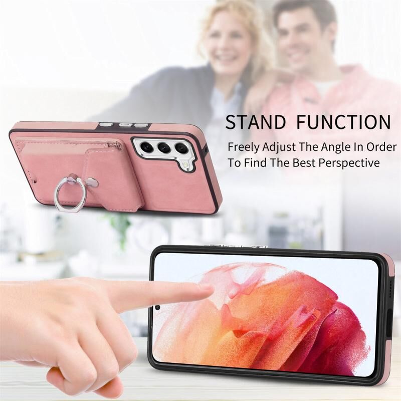 Για Samsung Galaxy S21 FE 5G Electroplating Skin-feel Δερμάτινο δαχτυλίδι κάρτα πορτοφόλι υπόθεση τηλεφώνου (ροζ)