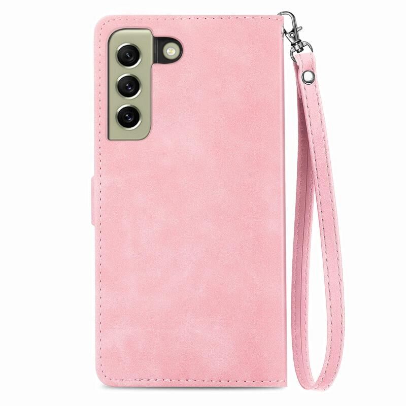 Για Samsung Galaxy S21 FE 5G ανάγλυφο λουλούδι Shockproof δέρμα υπόθεση τηλεφώνου (ροζ)
