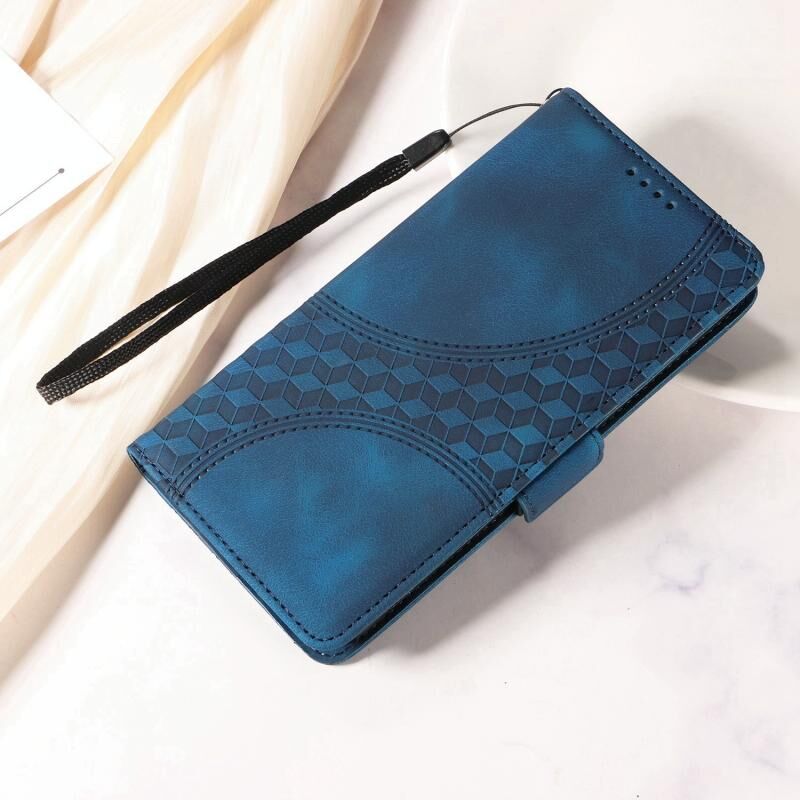 Για Samsung Galaxy S21 FE 5G ανάγλυφο ρόμβος αστερόεσσα δερμάτινη θήκη τηλεφώνου (μπλε)