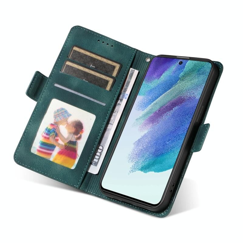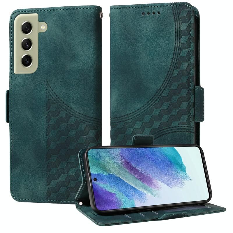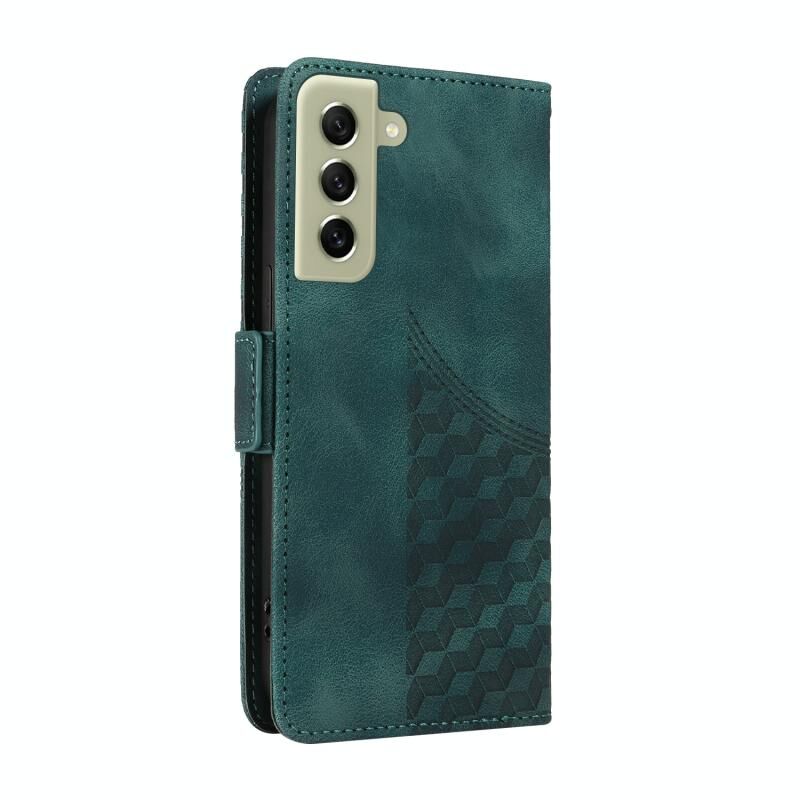 Για Samsung Galaxy S21 FE 5G ανάγλυφο ρόμβος αστερόεσσα δερμάτινη θήκη τηλεφώνου (πράσινο)
