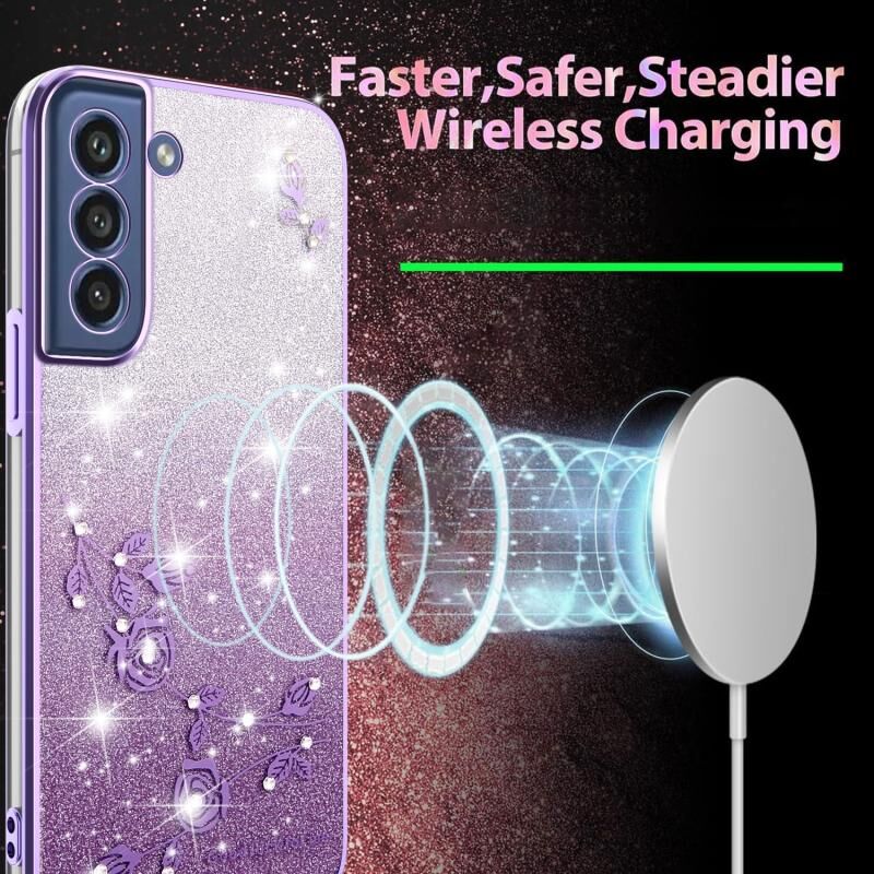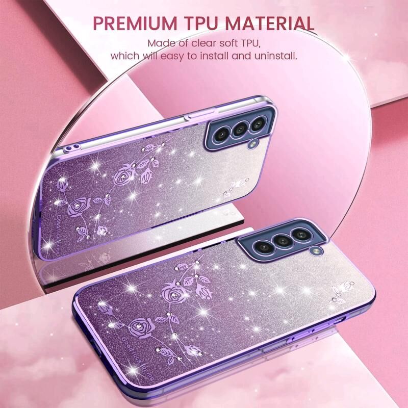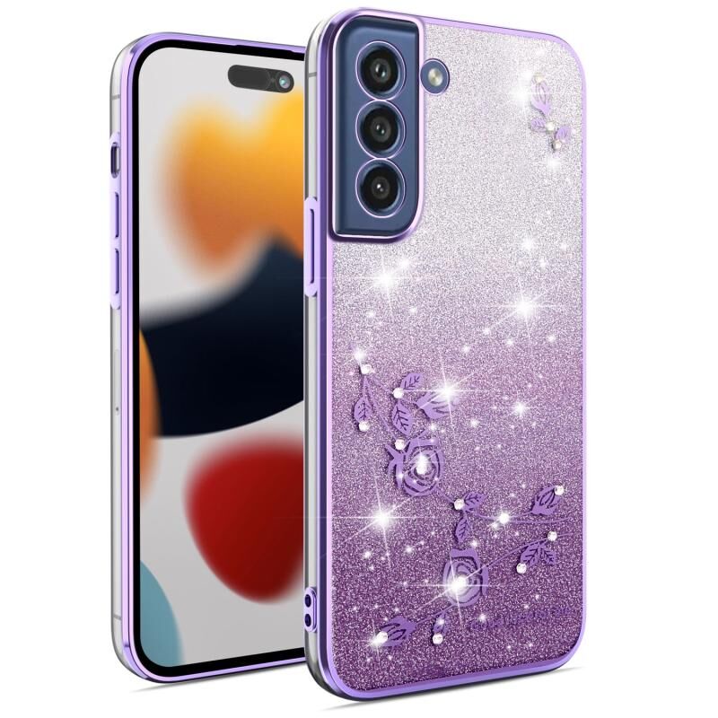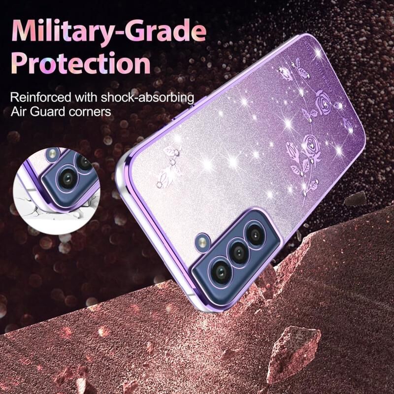 Θήκη κινητού τηλεφώνου για Samsung Galaxy S21 FE 5G, με σχέδιο διαβαθμισμένης λάμψης λουλουδιών, πλήρως προστατευτική (Μωβ)