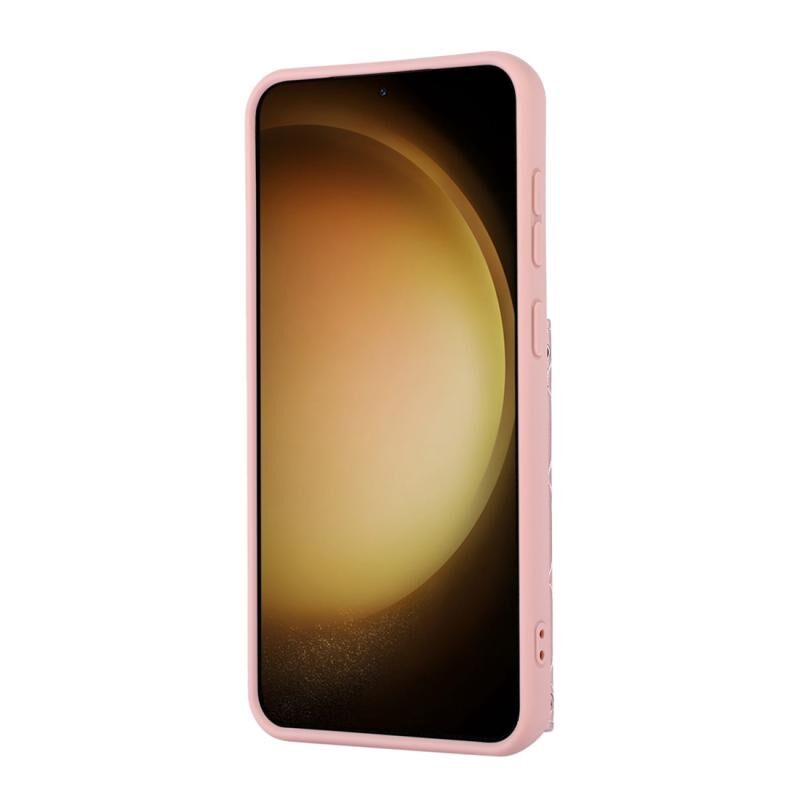 Για Samsung Galaxy S21 FE 5G Οριζόντια κάρτα τσάντα δαχτυλίδι τσάντα κάτοχος υπόθεση τηλεφώνου με διπλό κορδόνι (Ροζ χρυσός)