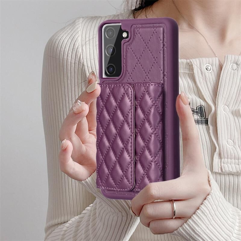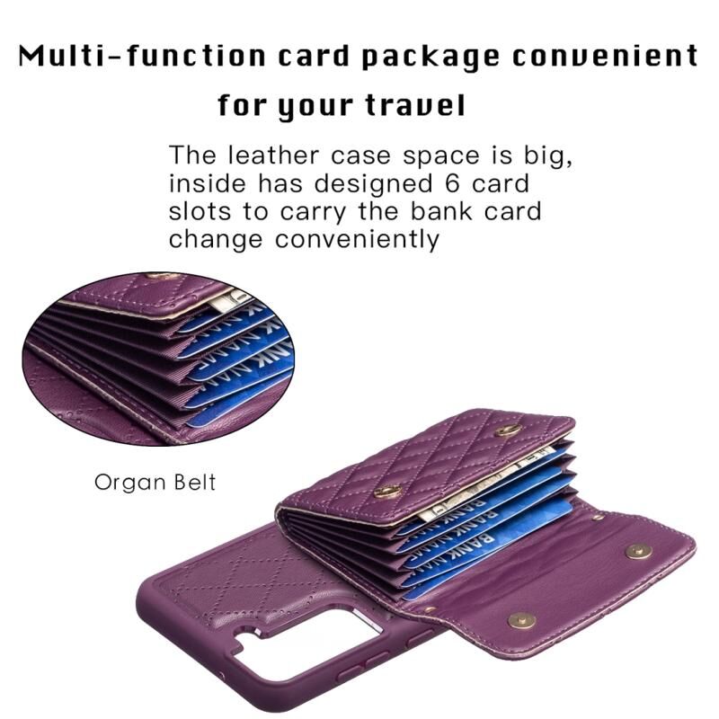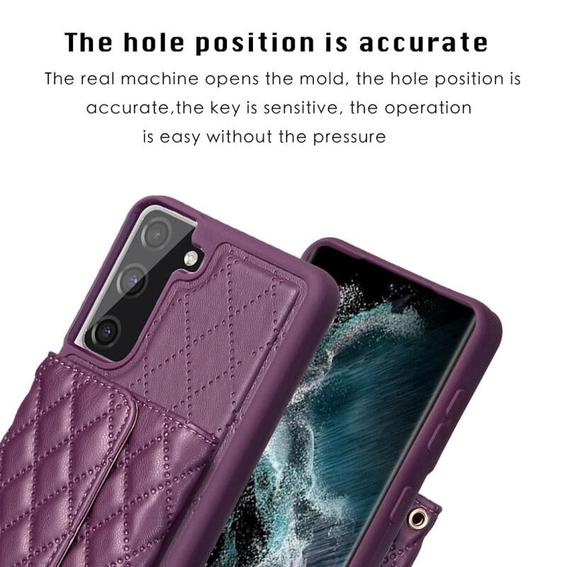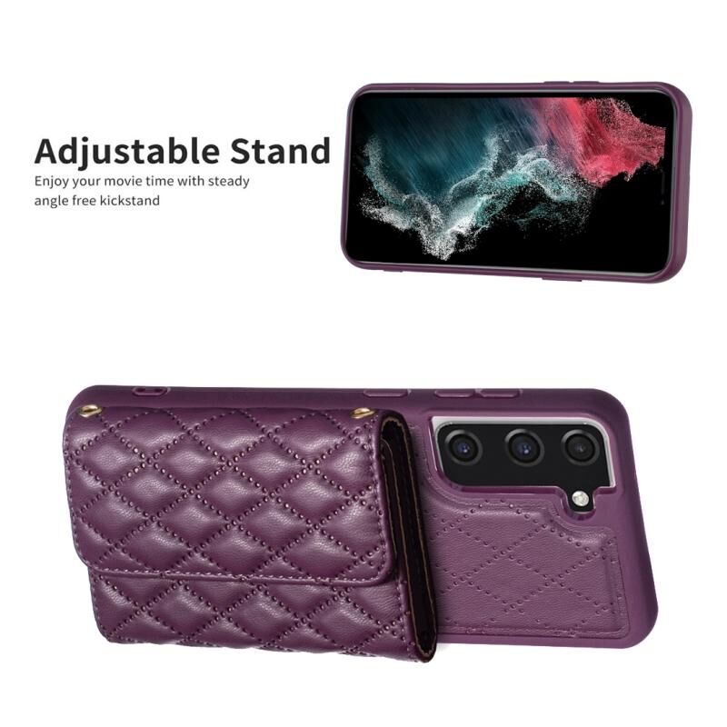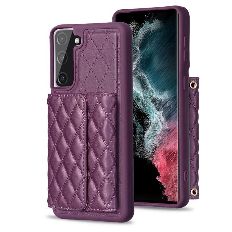 Για Samsung Galaxy S21 FE 5G Οριζόντια πορτοφόλι ρομβοειδής δερμάτινη θήκη τηλεφώνου (Σκούρο μωβ)