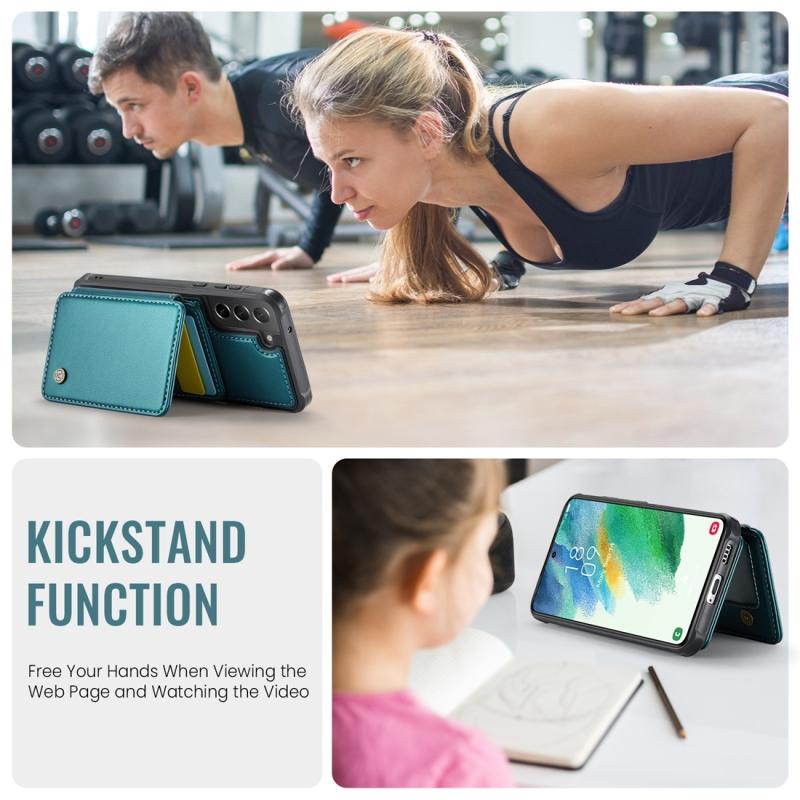 For Samsung Galaxy S21 FE 5G JEEHOOD J05 Business Magnetic Style RFID Leather Phone Case(Blue Green) (JEEHOOD)