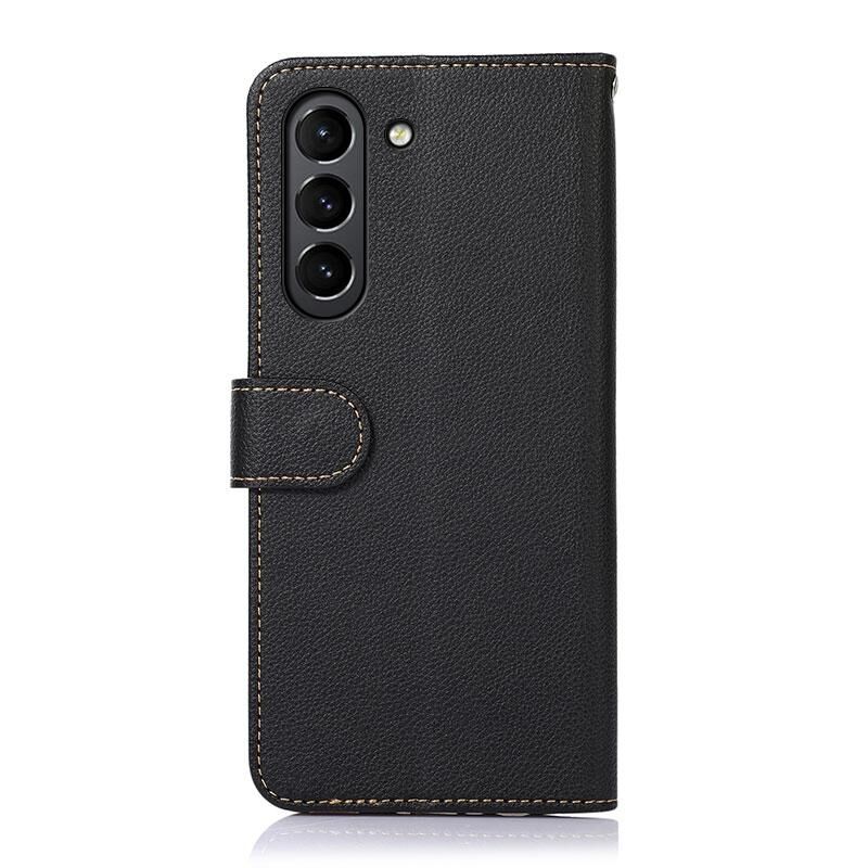 Θήκη κινητού Samsung Galaxy S21 FE 5G KHAZNEH με δέρμα υφής Litchi και προστασία RFID (Μαύρο)