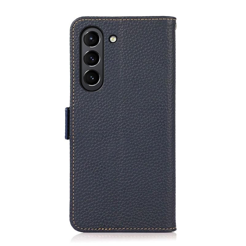 Θήκη τηλεφώνου Samsung Galaxy S21 FE 5G KHAZNEH με μαγνητικό κλείσιμο, από γνήσιο δέρμα Litchi και προστασία RFID (Μαύρο)