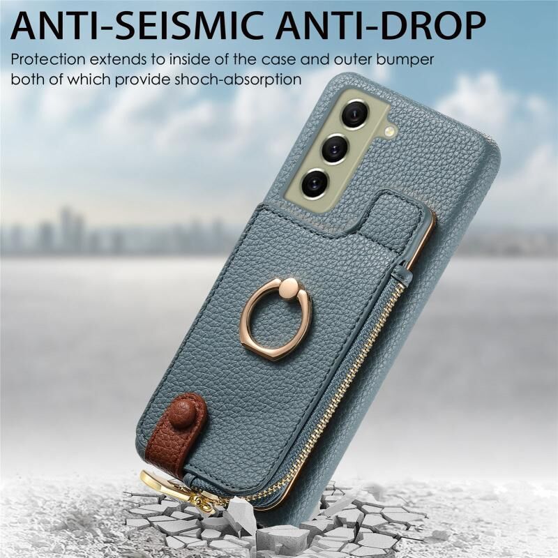 Για Samsung Galaxy S21 FE 5G Litchi δέρμα λάδι Edge δαχτυλίδι φερμουάρ πορτοφόλι πίσω θήκη τηλεφώνου (μπλε)