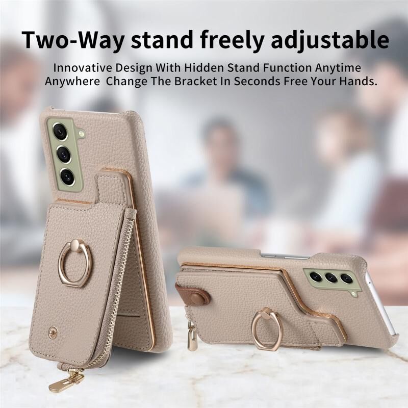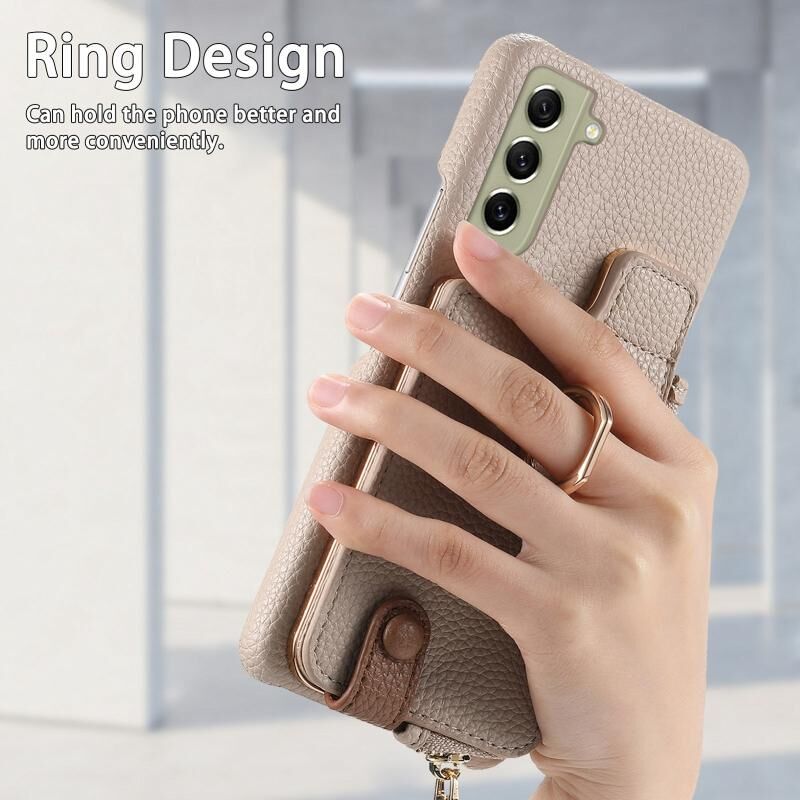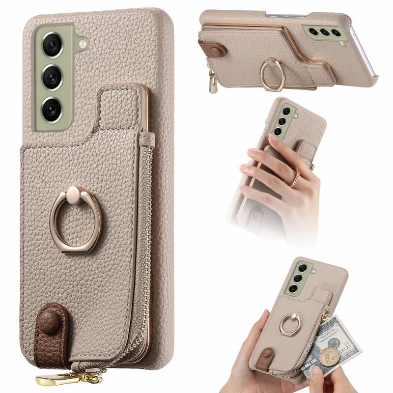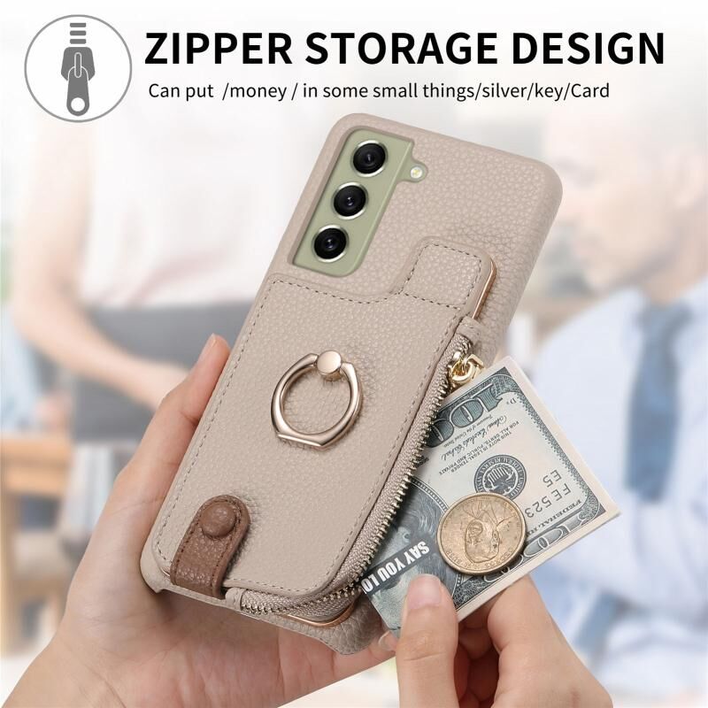Για Samsung Galaxy S21 FE 5G Litchi δέρμα λάδι Edge δαχτυλίδι φερμουάρ πορτοφόλι πίσω θήκη τηλεφώνου (λευκό)