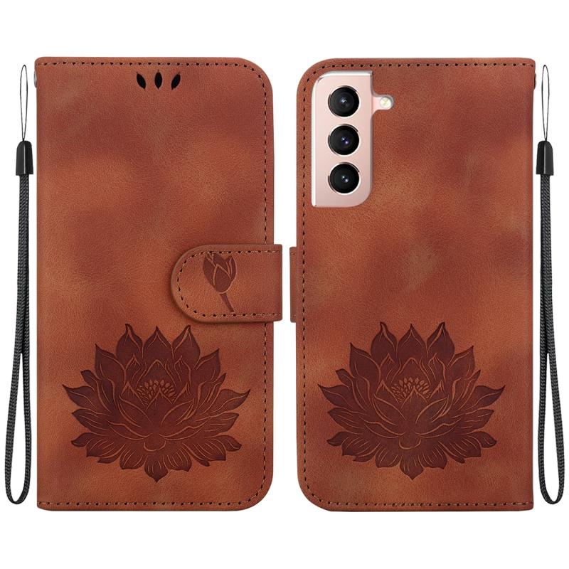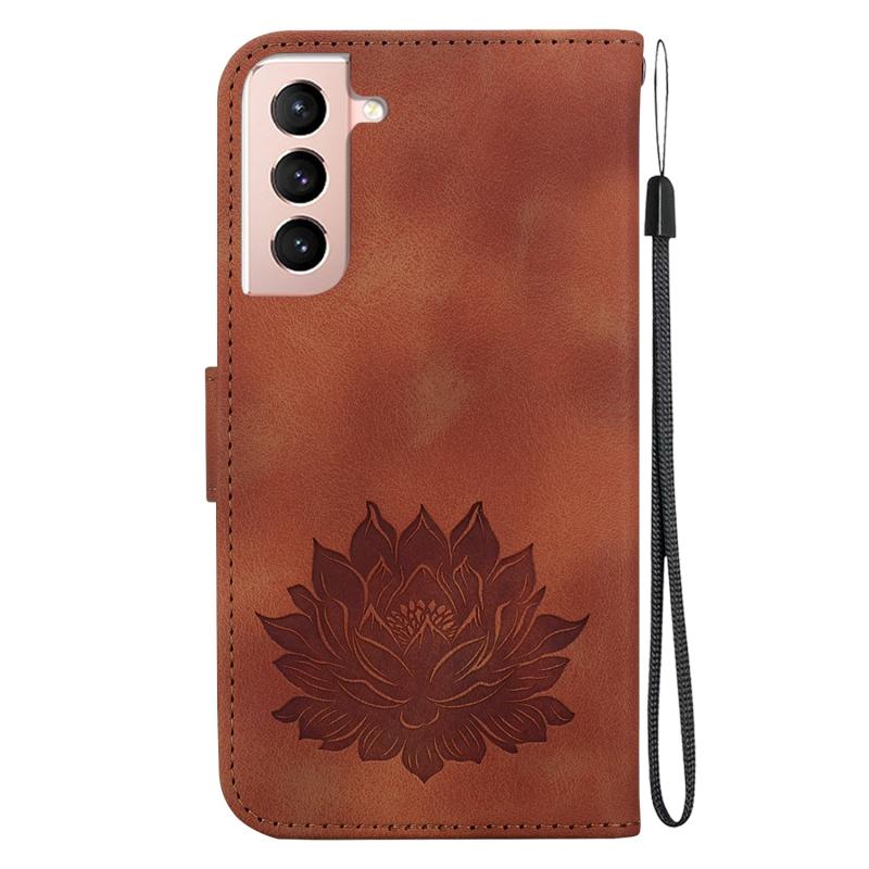 For Samsung Galaxy S21 FE 5G Lotus Embossed Leather Phone Case(Brown)