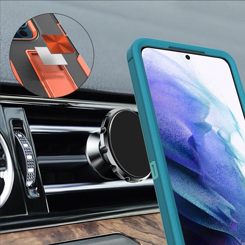 Για Samsung Galaxy S21 FE 5G Μαγνητική θήκη τηλεφώνου (Μαύρο + Πορτοκαλί)