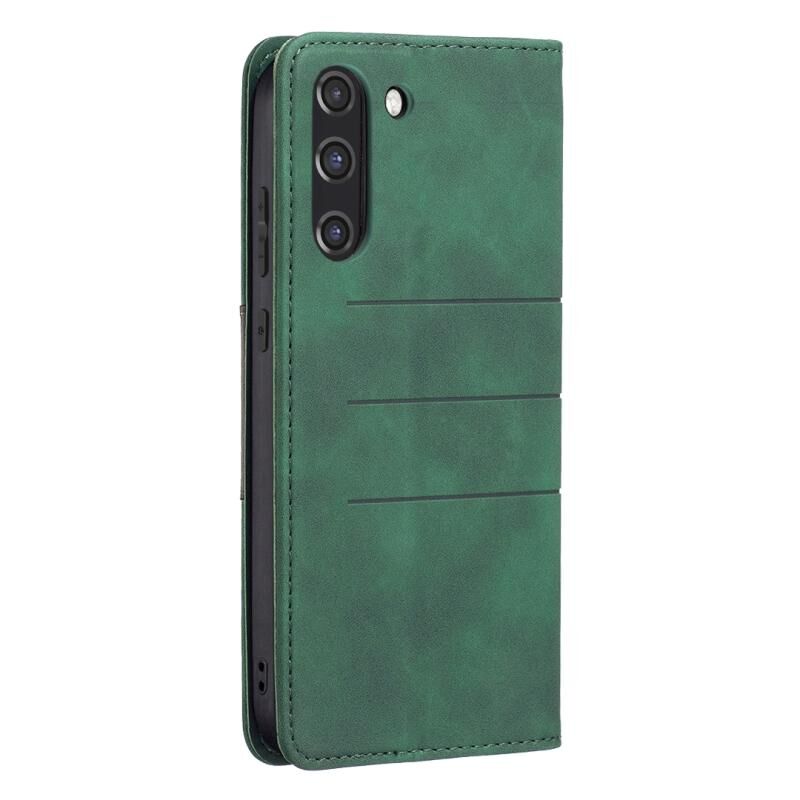 Για Samsung Galaxy S21 FE 5G Μαγνητική θήκη τηλεφώνου δερμάτινη (πράσινο)