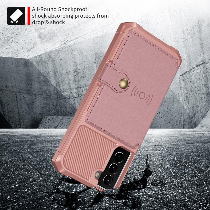 Για Samsung Galaxy S21 FE 5G Μαγνητικό πορτοφόλι κάρτα τσάντα τσάντα δερμάτινη θήκη τηλεφώνου (Ροζ χρυσός)