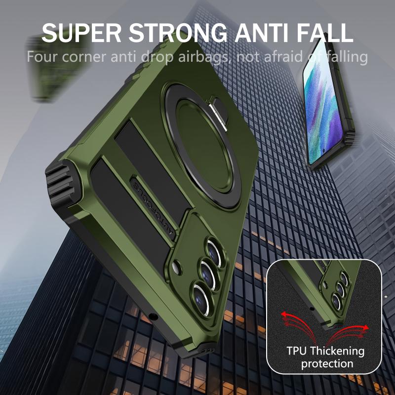 For Samsung Galaxy S21 FE 5G MagSafe Magnetic Holder Phone Case(Green)