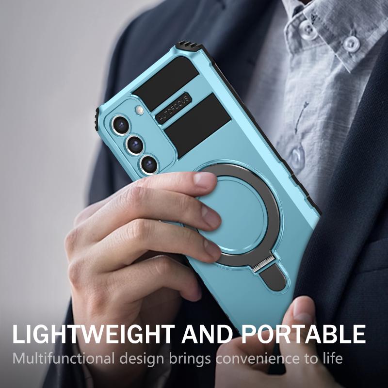 For Samsung Galaxy S21 FE 5G MagSafe Magnetic Holder Phone Case(Light Blue)