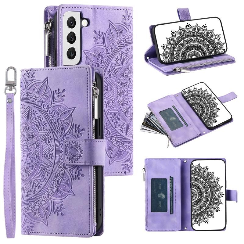 For Samsung Galaxy S21 FE 5G Multi-Card Totem Zipper Leather Phone Case(Purple)