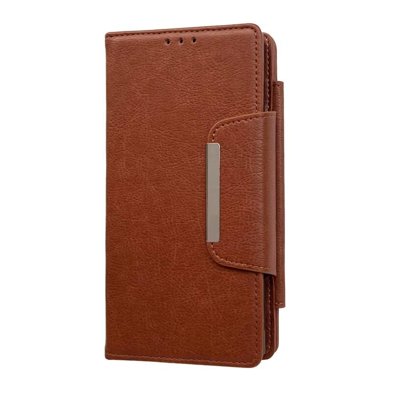 Για Samsung Galaxy S21 FE 5G Πολυλειτουργική 7-κάρτα πορτοφόλι δερμάτινη θήκη τηλεφώνου (καφέ)